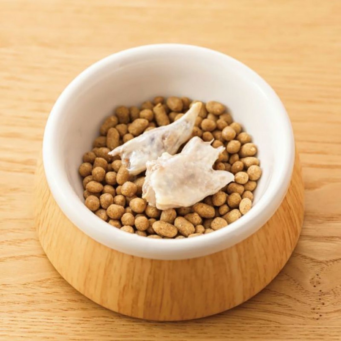 国産鶏の手羽先を水だけでじっくり煮込むことで、素材の旨みや香りがしっかり水に溶け出しています。味や香りを後から足さない無添加スープだから毎日安心して与えられ、鶏のやさしい香りと旨みは水を飲まない子の水分補給、食が細い子の食いつきアップに役立ちます。