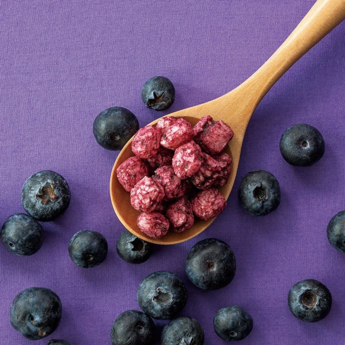 果実を丸ごと贅沢に使用!目に優しいアントシアニンの他、亜鉛やマンガンなど皮膚や被毛、骨の健康に必要な栄養素も豊富。小粒で与えやすく、カリカリと食べる音が耳に心地よい、飼い主さまにとっても楽しい逸品です。