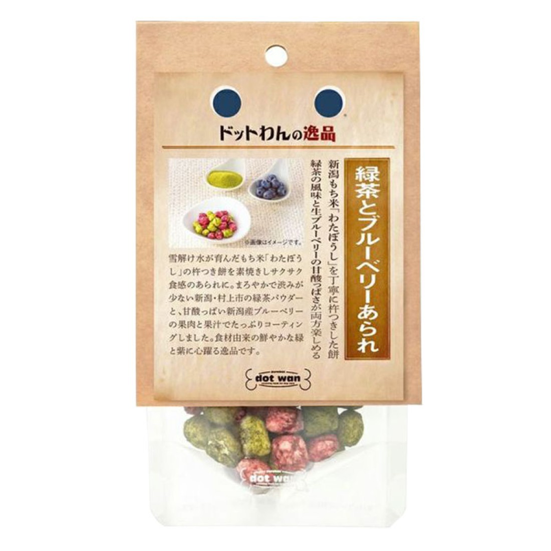 ドットわんの逸品 緑茶とブルーベリーあられ
