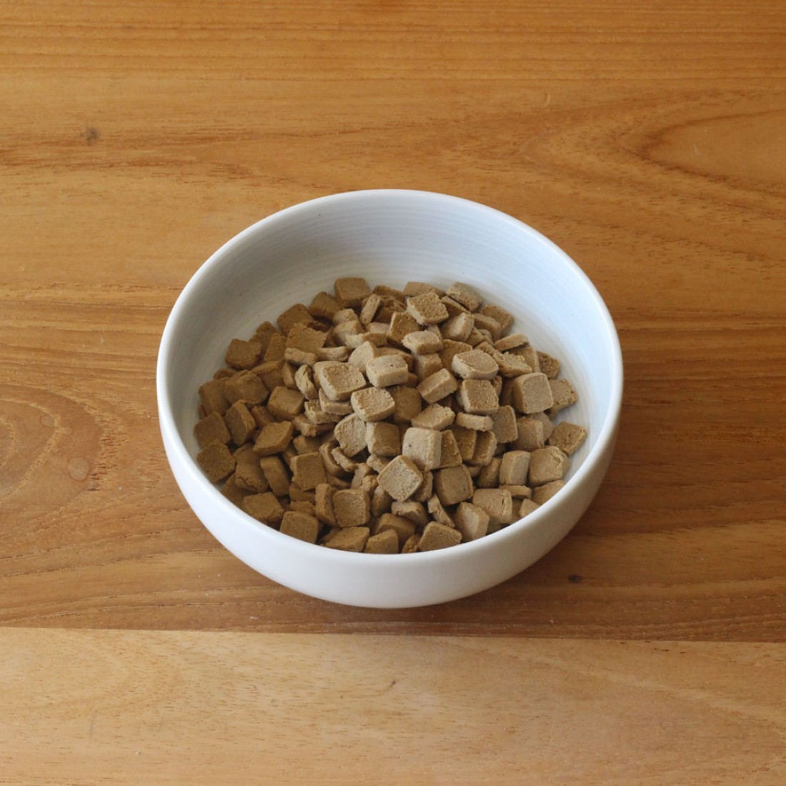 ドッグフードの香りではなく、とても美味しそうな出汁のような香りがします。 食いつきもとてもよいです。 ちょっと食べてみたら、本当に美味しかったです。 珍しい正方形で、しつけのご褒美としても、あげやすい形状です。 最初はぬるま湯でふやかしていましたが、今は少量の水で硬めにふやかしています。大きくなってきたので、そろそろふやかすのをやめようと思っています。 オイルコーティングなしにしては、ふやかすのに少し時間がかかるような気がしますが、気にならない程度です。 成犬になってもこのフードは、ご褒美おやつとしてあげたいと思います。